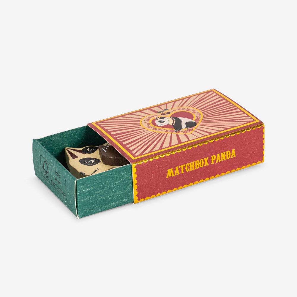 Découvrez ce petit panda en bois caché dans sa charmante boîte d'allumettes ! De taille idéale pour vous accompagner partout, cet animal miniature est aussi mignon que pratique. Tirez pour ouvrir et trouvez votre petit compagnon préféré.