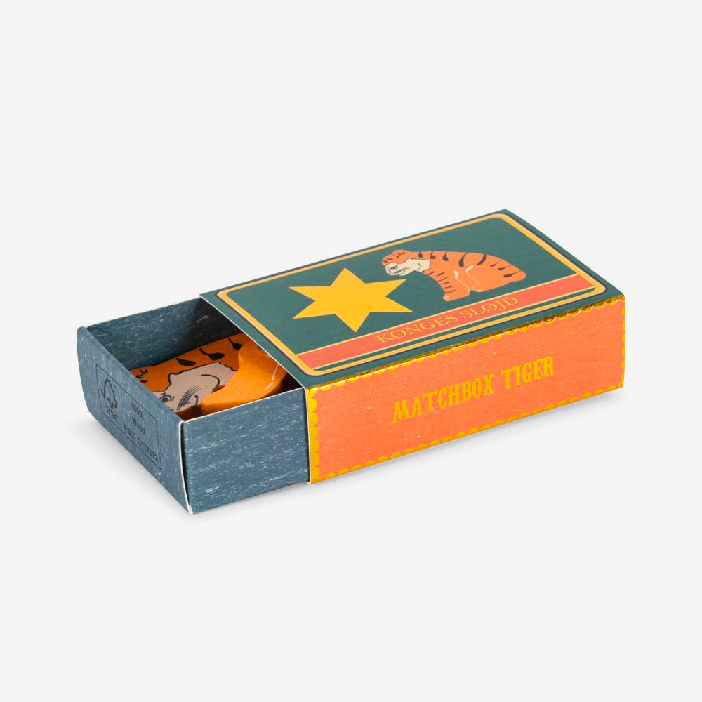 Ce charmant tigre en bois se cache dans une boîte d'allumettes pratique, un jouet de poche parfait pour l'aventure. Tirez pour découvrir ce petit animal de qualité, idéal pour stimuler l'imagination des enfants dès 24 mois. Emportez-le partout pour une petite touche de surprise et de jeu spontané !