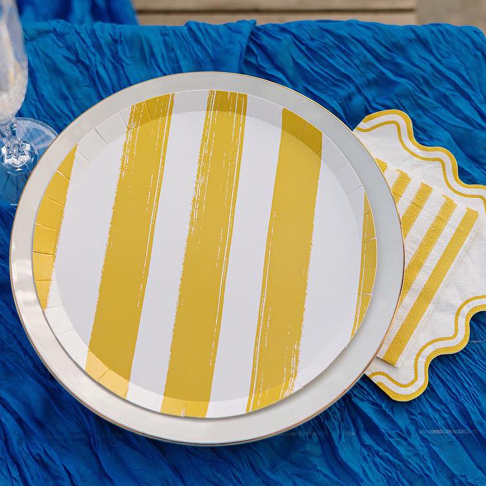 6 assiettes Ă rayures jaunes pour une fĂȘte colorĂ©e ! Pour une baby shower, un mariage ou un anniversaire enfant, ces assiettes jaunes Ă rayures sont parfaites ! Associez-les aux gobelets et serviettes assortis ou amusez-vous Ă mĂ©langer les couleurs.