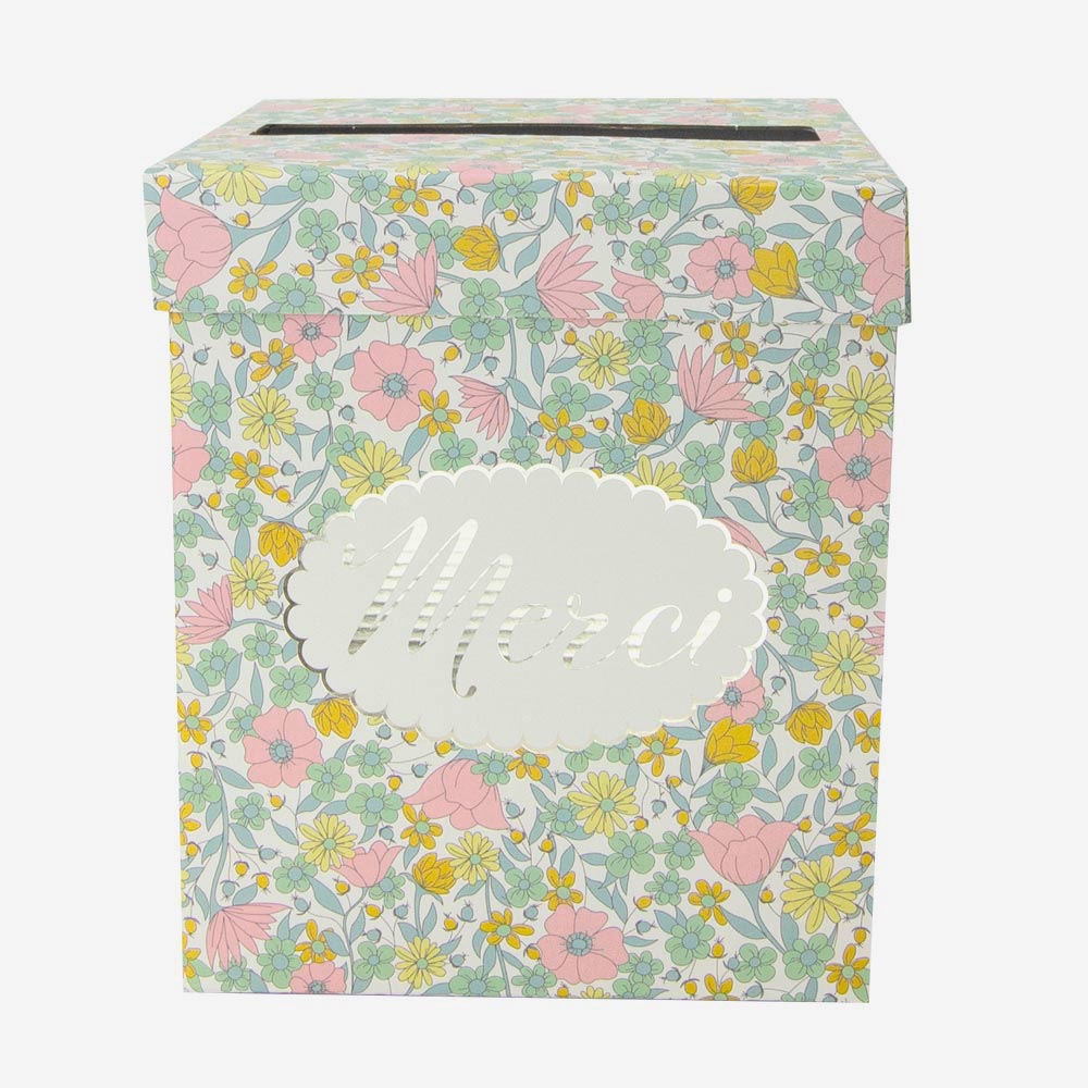 Apportez une touche florale et romantique Ă votre dĂ©coration avec cette jolie urne "Merci" au motif liberty. Parfaite pour un mariage, une baby shower ou un anniversaire champĂȘtre, elle permettra de recueillir enveloppes, petits mots et attentions avec Ă©lĂ©gance. Un accessoire aussi pratique que dĂ©coratif pour sublimer votre table de fĂȘte !Â