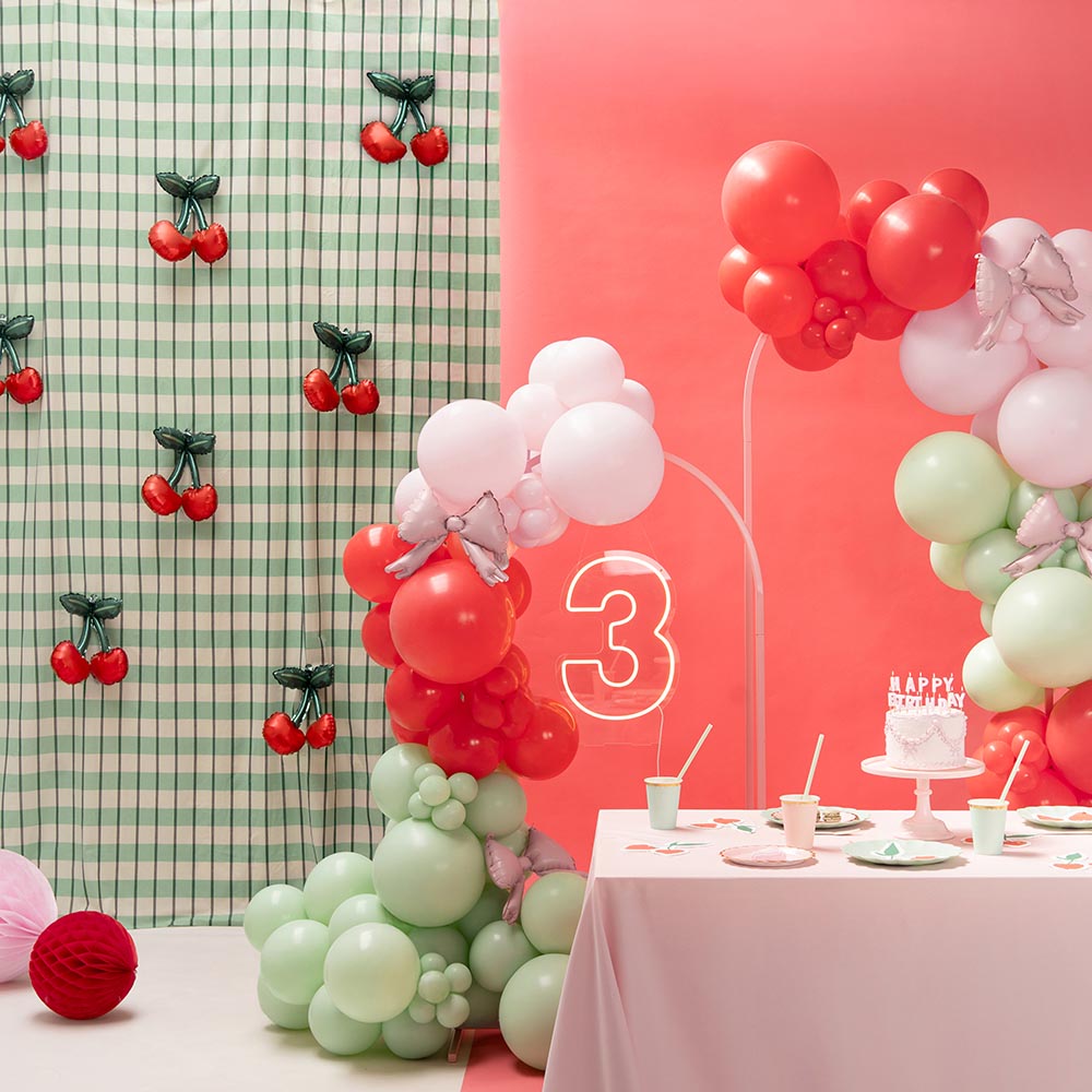 Vous organisez une fĂȘte sur un thĂšme estival, et vous voulez une touche vitaminĂ©e ? En forme de cerise, ces 3 ballons dĂ©coreront parfaitement un anniversaire ou une baby shower. Pour dĂ©corer ces ballons peuvent ĂȘtre gonfler ou Ă l'air grĂące Ă la paille incluse. N'hĂ©sitez pas Ă les associer avec d'autres ballons pour crĂ©er une arche de ballon fruitĂ©e !Â