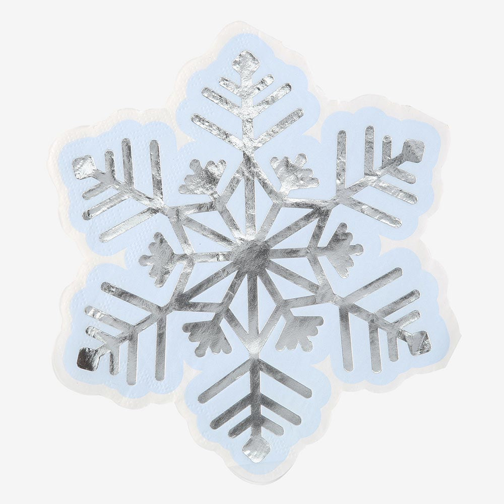 Ces 16 serviettes en papier en forme de flocon de neige de couleur bleu glacier et argenté sont parfaites pour compléter une déco d'anniversaire Reine des neiges ! A associer au reste de la vaisselle assortie.