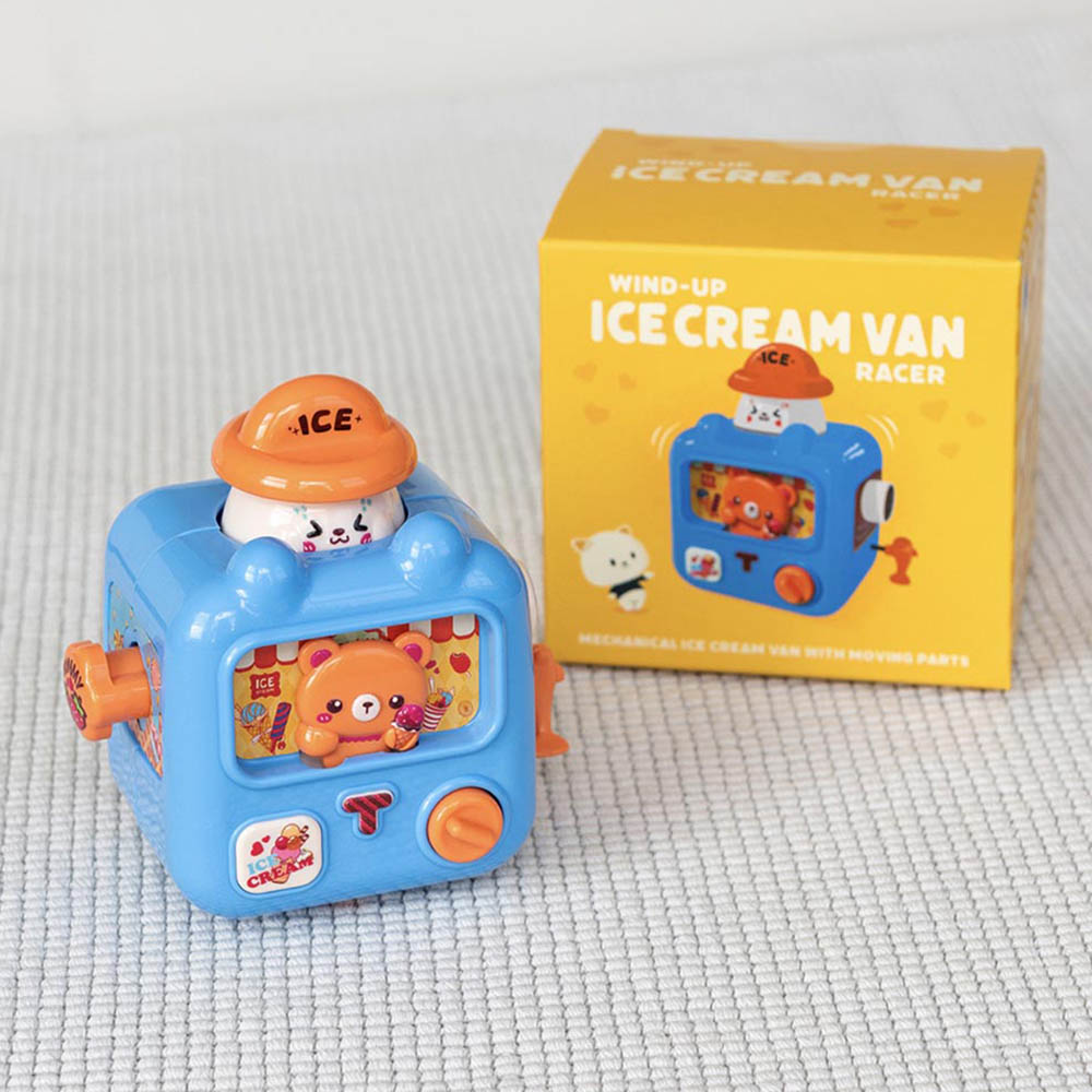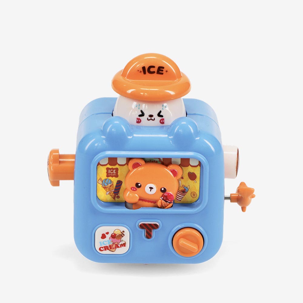 Ce charmant camion de glace Kawaii en bleu ravira les enfants ! Il suffit de remonter le mécanisme pour le voir filer sur une surface plane. Les panneaux latéraux, la mascotte animale sur le toit et le petit ours qui sert la glace se déplacent en rythme, ajoutant une touche de magie à chaque course.