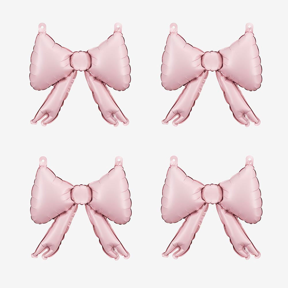 Craquez pour ces 5 mini ballons noeuds rose clair, parfaits pour une décoration anniversaire ou une baby shower à la fois tendance et élégante ! à utiliser seuls ou à incorporer dans une arche de ballons pour en mettre plein les yeux à vos invités !