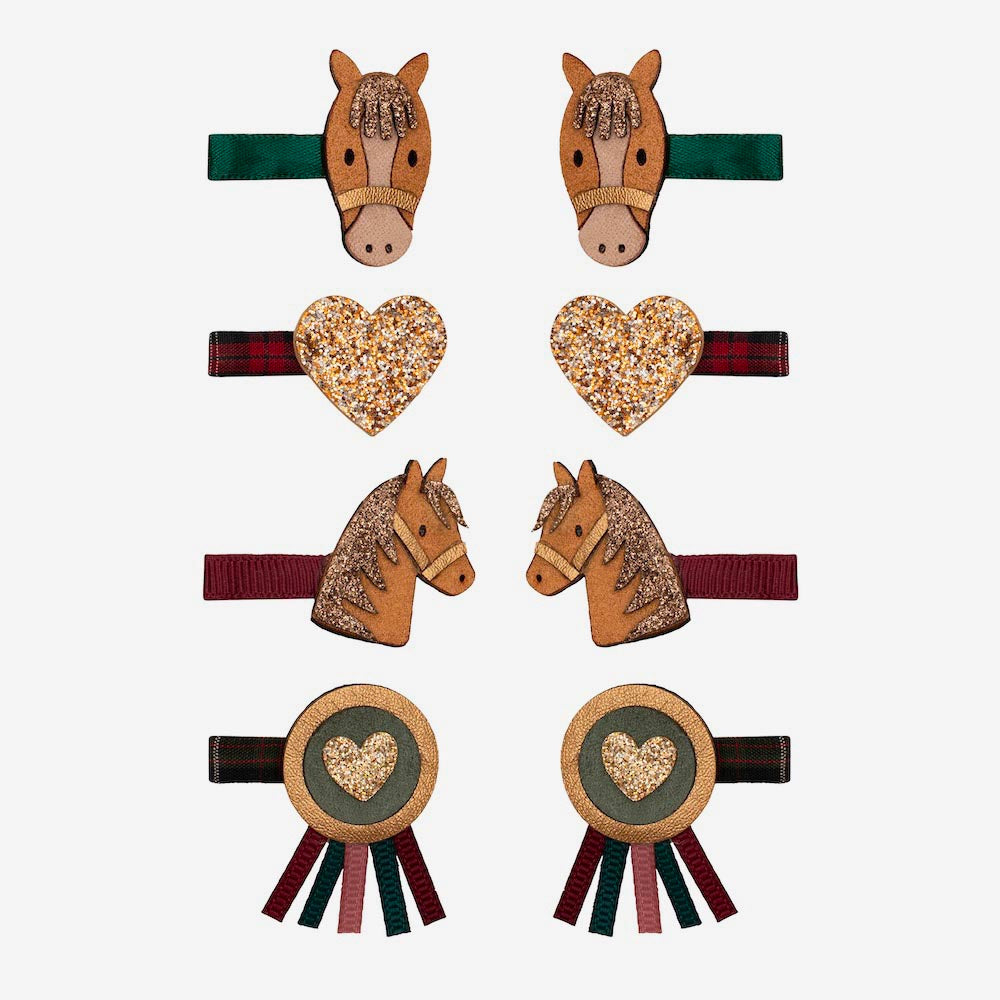 Offrez une touche d'originalité à la coiffure de votre enfant avec ces barrettes équitation. Parfait comme petit cadeau invité ou pour comme cadeau anniversaire lors d'un anniversaire cheval. Parfaites pour maintenir les cheveux en place tout en ajoutant une note élégante, ils sont parfaits pour galoper vers l'aventure !