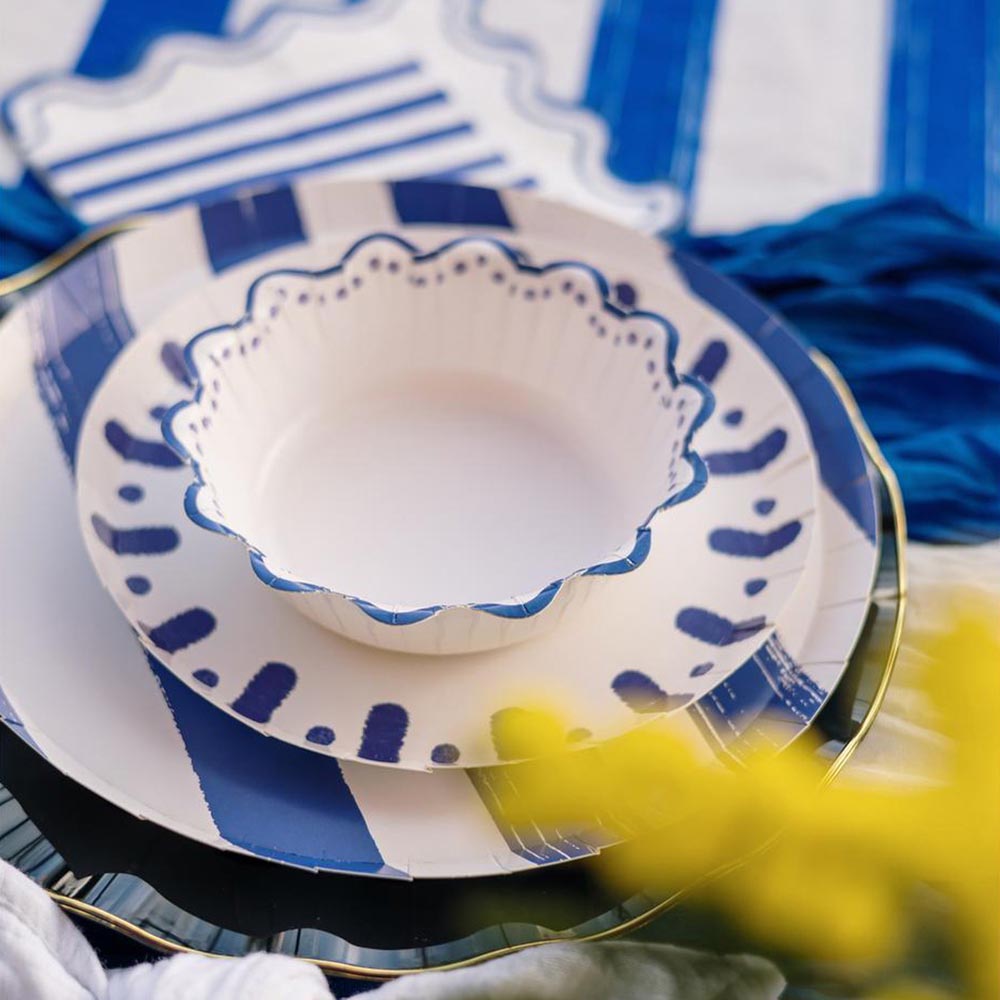 Assiette en carton : 6 bols vagues bleues