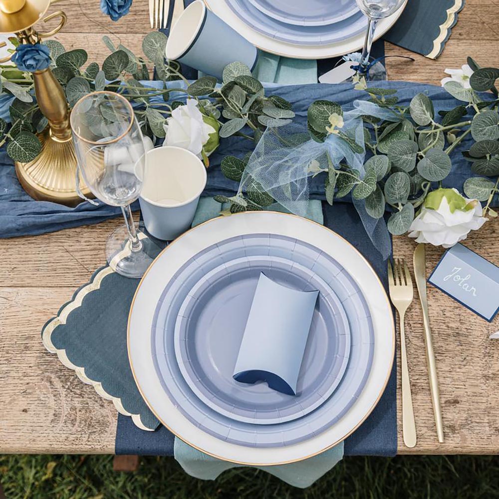 Vous organisez une garden party, une baby shower, un brunch de mariage, un baptĂȘme ou une fĂȘte dans un parc ? Un anniversaire marin ou bleu ? Toutes les occasions sont bonnes. Ces berlingots bleu orage et marine crĂ©eront une atmosphĂšre chic et Ă©lĂ©gante. A associer Ă la vaisselle de la collection bleu.