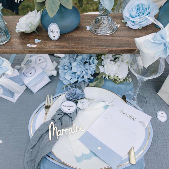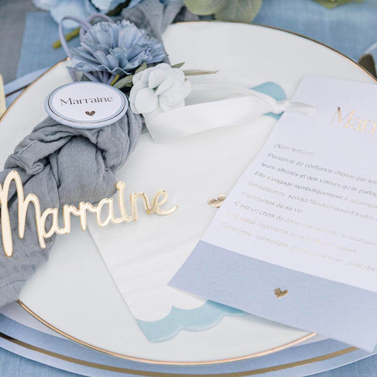 Ces 2 badges Parrain et Marraine sera un Ă©lĂ©ment indispensable pour une baby shower garcon ou un baptĂȘme. DĂ©posez-le sur une table, il sera parfait pour complĂ©ter la dĂ©coration de table.