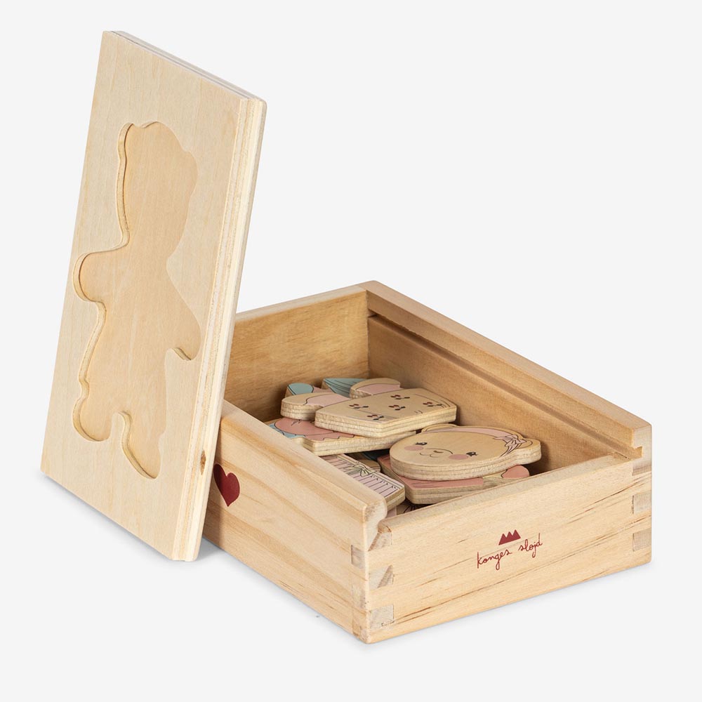 Découvrez cet adorable puzzle en bois ourson à habiller, un jouet classique et éducatif qui combine le plaisir du puzzle avec le jeu d'association et d'imagination ! Ce set comprend un charmant ourson et de nombreuses pièces interchangeables qui permettent aux enfants de le vêtir selon leur humeur, l'occasion ou même la météo.