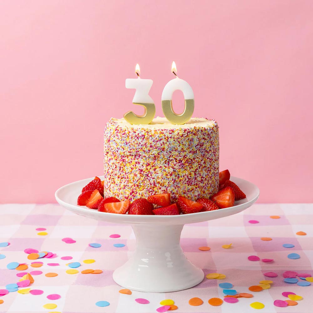 Décorez votre gùteau anniversaire avec ces bougies chiffres de couleur blanc et doré ! Ces bougies sont idéales pour un anniversaire 30 ans !