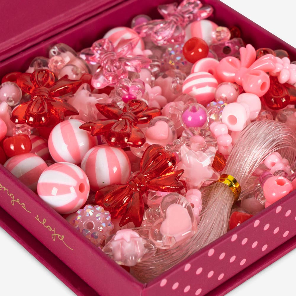 Ce magnifique coffret de perles dans les tons de rose est une activité créative incontournable pour les enfants ! Idéal pour un atelier de fête d'anniversaire ou comme cadeau d'exception dans une pochette surprise. Ce kit complet permet aux petites mains de créer leurs propres colliers et bracelets, stimulant la motricité fine et l'imagination.