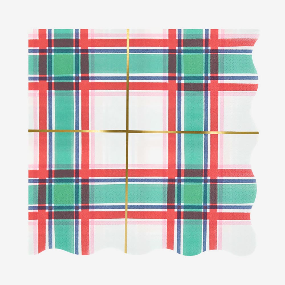 • 16 serviettes en papier motifs tartan meri meri pour décoration noël