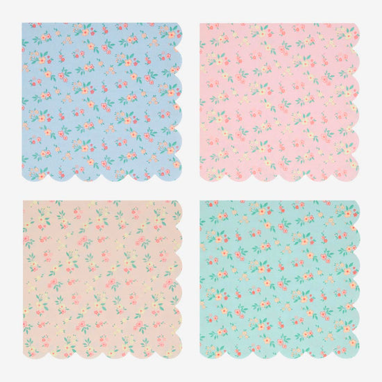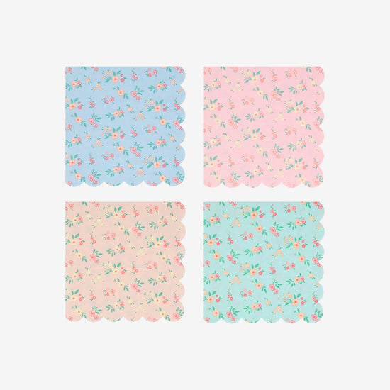 16 serviettes en papier ornĂ©es de fleur dans des teintes pastel, parfaites pour dresser une table de PĂąques ou pour un anniversaire fleuri. Elles apporteront une touche florale et Ă©lĂ©gante Ă votre table de fĂȘte.